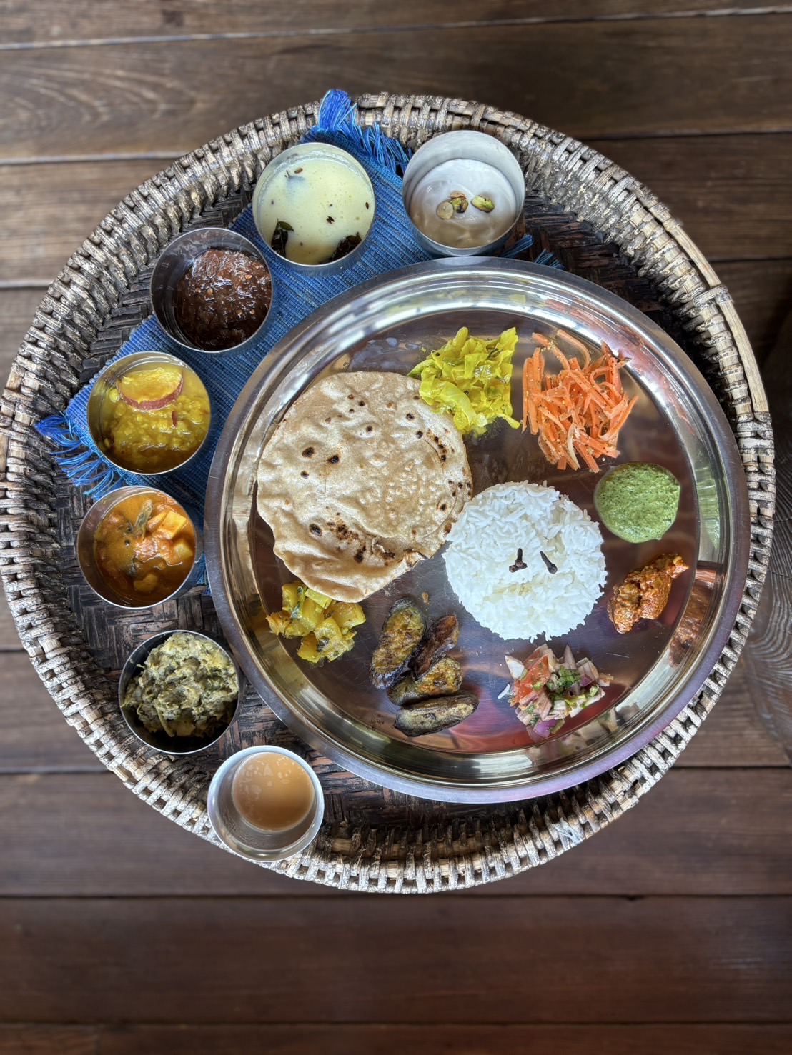 アルゴビはジャガイモとカリフラワーのスパイス炒め、ナスのアチャールは辛い付け合わせです。
